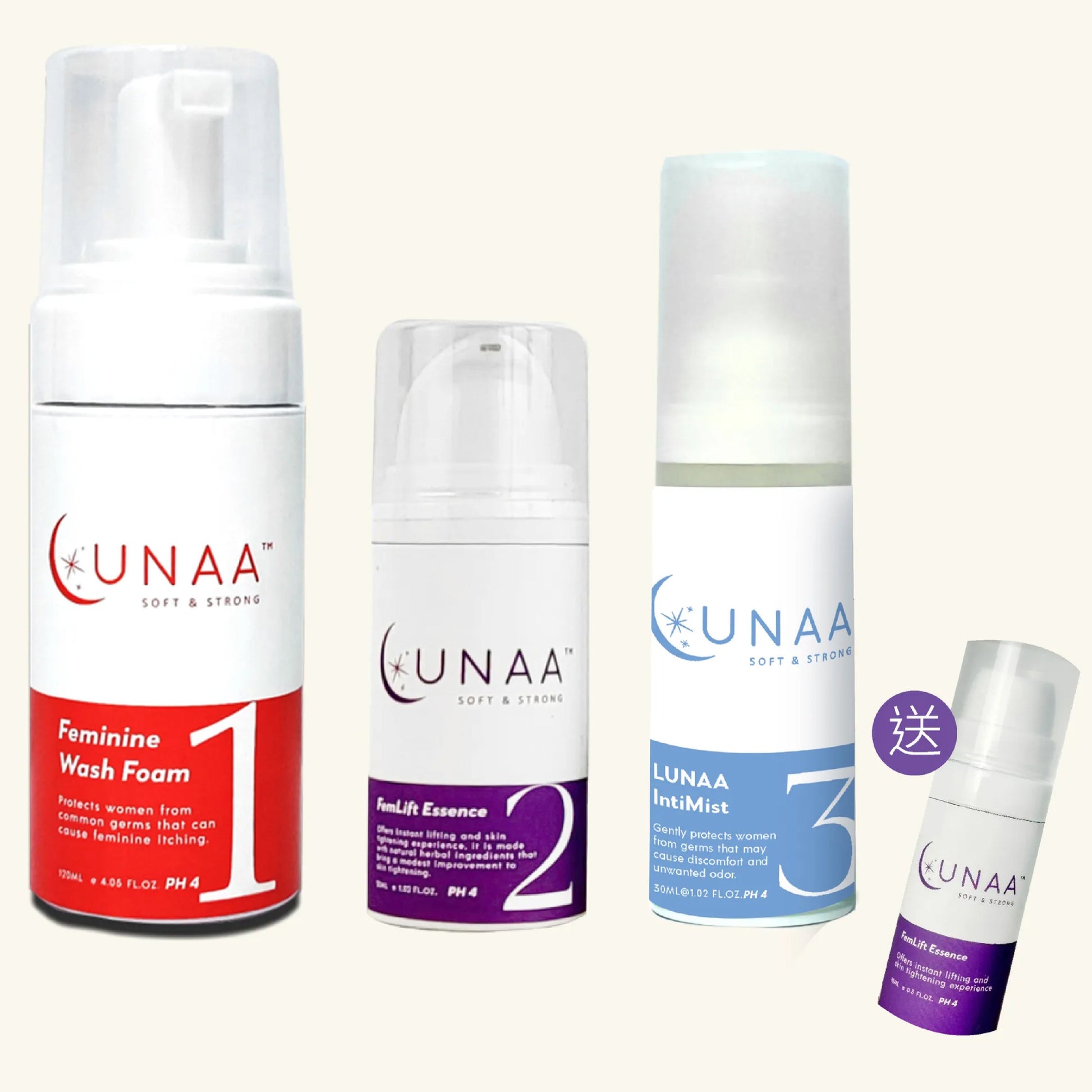 Lunaa Feminine Wash, Femlift Essence & Intimist Spray